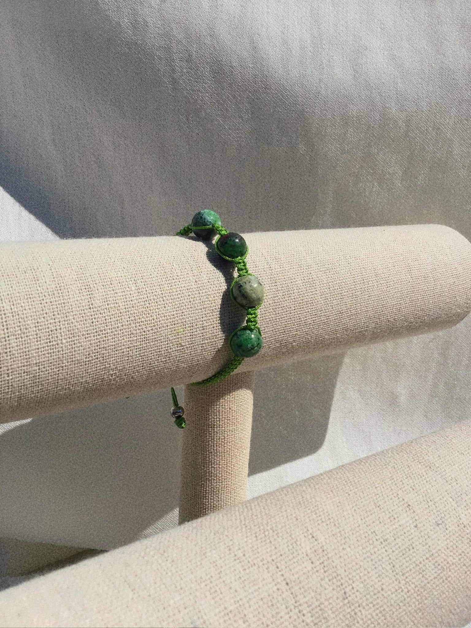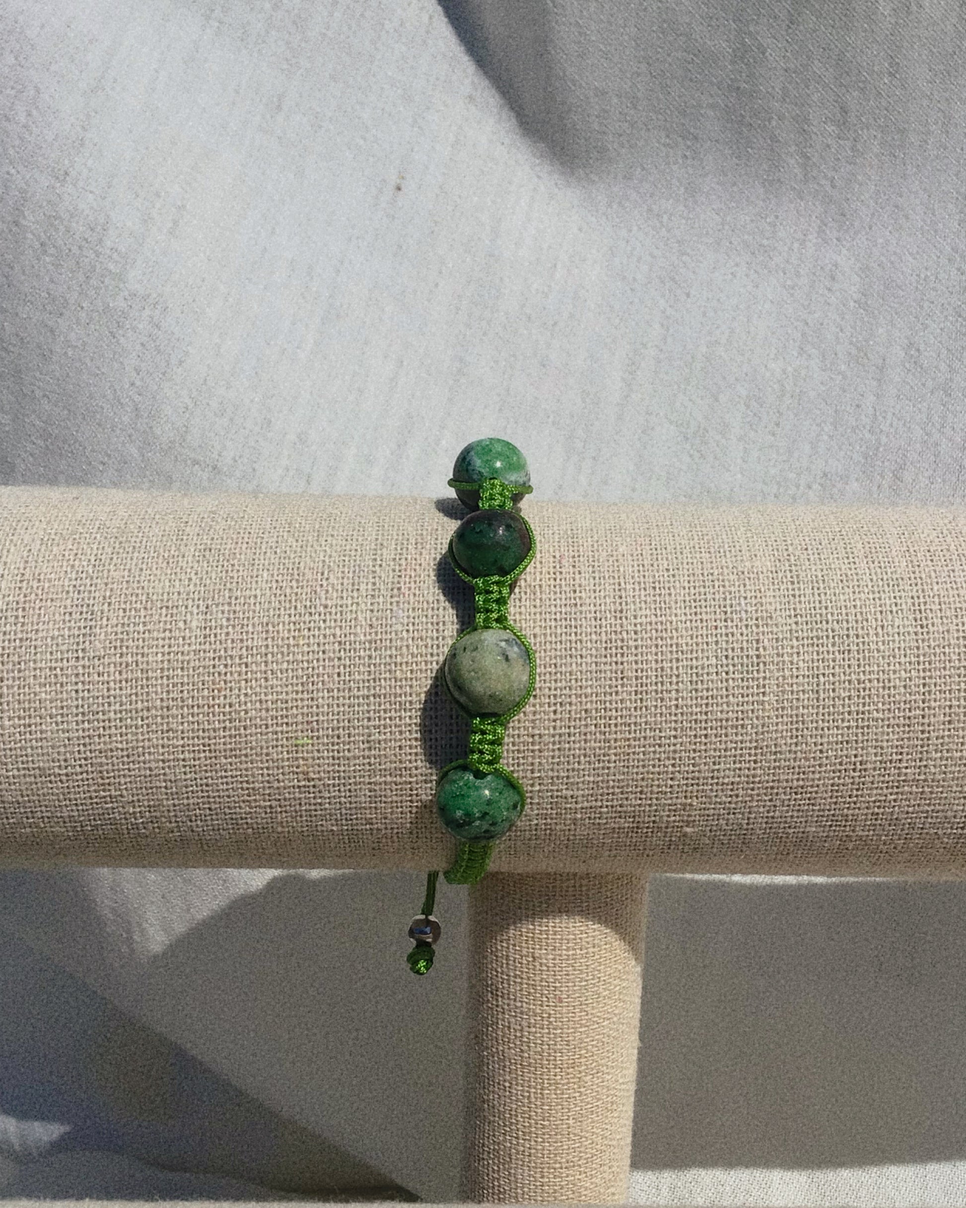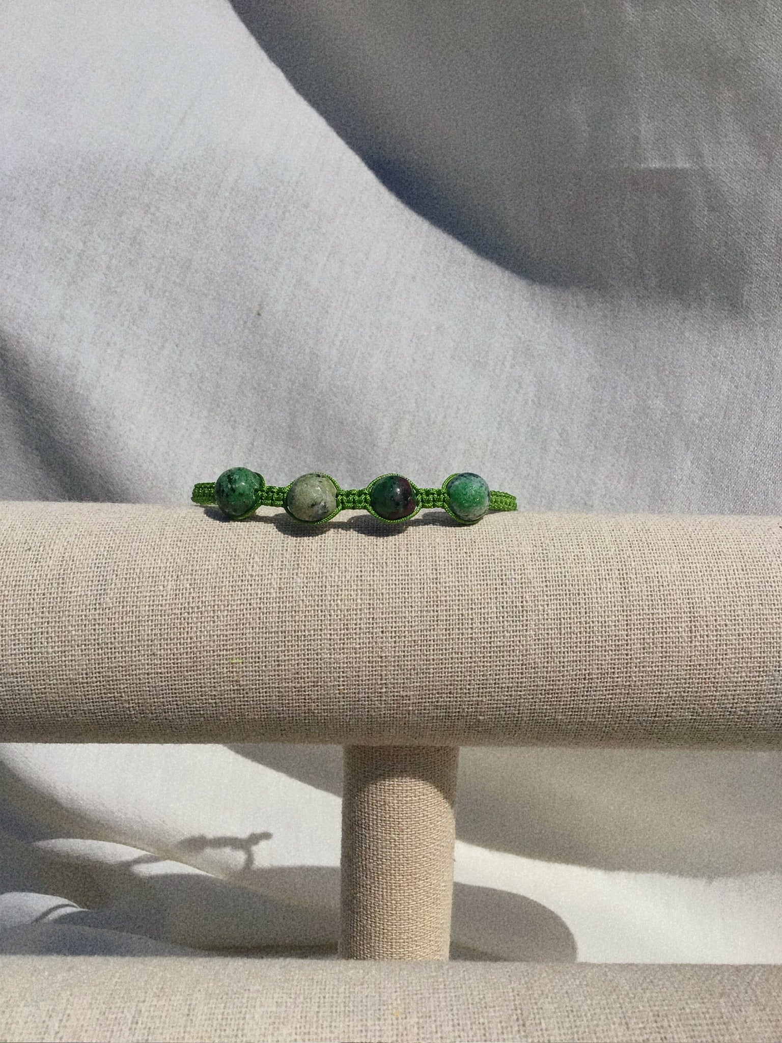 Fusion du courage (rubis) et de la croissance spirituelle (zoïsite). Stimule l'énergie vitale, transforme les émotions négatives. |
